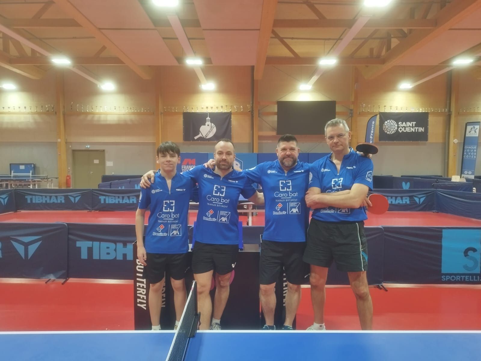 Pour cette première journée, il fallait craindre les équipes renforcées en début de phase. RÉGIONALE 2f - Poule 1 : CAPPELLE-EN-PÉVÈLE 3 / TTSQ 3 : 10 / 0 Le déplacement à Cappelle-en-Pévèle s’est logiquement déroulé difficilement pour Élodie Venderbure, Crystina Wazé et Johanna Grare contre des adversaires bien mieux classées. Équipe adverse : Estelle Blondel 639 Clémence Brocart 629 Perrine Blondel 595 PRÉNAT - Poule 12 : TTSQ 3 bat LILLE MÉTROPOLE 5 par 13 à 1 En décembre dernier, il y avait encore 2 divisions d’écart entre TTSQ3 en N3 et Lille5 en R1. Les Saint-Quentinois ont donc logiquement dominé les Nordistes et n’ont laissé qu’1 point aux visiteurs par Augustin Bendier, monté comme titulaire à ce niveau. Un bon début. Équipe adverse : Gabin Pattiniez 1639 Florian Machin 1619 Augustin Mistral 1549 Thomas Girard 1465 RÉGIONALE 1 - Poule 6 : FLINES -LEZ-RACHES / TTSQ 4 : 10 / 4 TTSQ4 a bien résisté, à l’image du capitaine Keveen Moret (2 perfs à 16) qui rate le triplé et la grosse performance sur le 18 aux avantages à la belle après 3 balles de match. Il est vengé par la jeune Blanche Sebbe qui obtient cette perf à 18 alors que Vincent Joui marque également 1 point. Pour Wyatt Mangin (classé 13), monté en R1, l’opposition était trop forte. Équipe adverse : Mickaël Bodard 1879 Laurent Graziani 1744 Hugo Lançon 1671 David François 1604 RÉGIONALE 2 - Poule 1 : TTSQ 5 et SAINTINES : 7 / 7 Avec un superbe Axel Dutilleux (3 victoires dont 2 perfs à 16), l’équipe 5 d’Arnaud Lambert (2 victoires +double) a pu arracher le nul par son capitaine lors de la dernière partie. Jean-Baptiste Carlier a marqué 1 point et Nathanael Clément a su apporter le gain important du double N°2 avec Arnaud. C’est un bon résultat contre une équipe plus forte sur le papier. Équipe adverse : Joris Thomas 1661 Joël Walk 1614 Emmanuel Ravaux 1590 Nicolas Le Guillou 1375 RÉGIONALE 3 - Poule 1 : ST MAX-ST LEU et TTSQ 6 : 7 / 7 Déception pour TTSQ6 qui a remporté les 2 doubles si importants et qui a mené 7/4. Pourtant, malgré les 3 victoires logiques de Guillaume Legrand, ses coéquipiers ont craqué. Thomas Poitte (perf à 12) et Nicolas Leclère ne ramènent seulement qu’1 point chacun et Noémie Marron gagne le double N°2 avec Guillaume. C’est frustrant. Équipe adverse : Sébastien Versavel 1289 Mickaël Beerens 1281 Guillaume Delys 1244 Kylan Le Cadre 1175 RÉGIONALE 4 - Poule 1 : TTSQ 7 / BEAUVAIS 4 : 5 / 9 Défaite de l’équipe 7 du capitaine Sébastien Boulanger malgré la belle prestation du jeune Émeric Grespinet (2 perfs à 13 et 10). Grégory Portelette et Loïc Lebrun (1 victoire +double chacun) complètent le score final alors que Thony Venderbure perd 1 belle après avoir mené 2 manches à 1 et échoué 10/12 dans la quatrième. C’est l’apprentissage de la Régionale 4. Équipe adverse : David Damay 1370 Anne-Sophie Hamon 1211 Nicolas Lemire 1128 Thomas Dewulf 1043 RÉGIONALE 4 - Poule 4 : TTSQ 8 bat BEAUVAIS 5 par 9 à 5 Belle victoire de TTSQ8 avec le jeune Gauthier Lambert (3 perfs à 11, 11 et 10 +double). La capitaine Béatrice Fouquet et Frédéric Boitelle (2 victoires chacun +double) complètent le score alors que Franck Sportelli doit se contenter du double N°1 avec Gauthier. Équipe adverse : Marius Léger 1255 Kodi Vonderau 1134 Dorian Bellot 1104 Jonathan Luxin 1090 RÉGIONALE 4 - Poule 6 : AMIENS 9 / TTSQ 9 : 8 / 6 TTSQ9 perd 3 belles sur 4 comme Paul Durietz lors de la 14e et dernière partie pour arracher le match nul. Ugo Pieyre (2 victoires +double avec Paul), Sacha Grapinet (2 perfs à 14 et 10) et Quentin Hennemann (1 victoire) ont échoué contre une forte équipe d’Amiens. Équipe adverse : Paul Vandewoestyne 1618 Tom Hogeman 1431 Quentin Gilsanz 1191 Antoine Thorel 1017 DÉPARTEMENTALE 1 - Poule 2 : TTSQ 10 / FRESNOY 2 : 1 / 17 Contre l’équipe réserve de Fresnoy, TT Saint-Quentin 10 n’a rien pu faire et seul Sami Moujahed a pu sauver l’honneur lors de la 14e et dernière partie, aux avantages à la belle. Il faudra vite réagir pour éviter les difficultés de la première phase. Équipe adverse : Ghislain-Laurent Pouillie 1056 Jean-Luc Decroix 1007 Jean-Luc Laguillier 891 Théo Macarez 865 DÉPARTEMENTALE 1 - Poule 1 : TTSQ 11 bat LAON par 10 à 8 Malgré la présence de Hoc Tan Kim (10) pour Laon, TTSQ11 a su l’emporter par la plus petite marge grâce à Mehdi Benboukker (3 victoires +double), Julien Rousselle (2 victoires +double), Loïc Carlier (2 victoires) et Romuald Gauthier (2 victoires). C’était juste. Équipe adverse : Hoc Tan Kim 1047 Raphaël Fontenay 787 Isabelle Holl 684 Dominique Blondelle 509 DÉPARTEMENTALE 1 - Poule 3 : TTSQ 12 / ROZOY : 8 / 10 La solide équipe de Rozoy a battu de peu TTSQ12, emmenée par la famille Dhollande. Antoine (4 victoires) et Gaspard (3 perfs à 8, 9 et 10 +double) ont bien résisté, mais Florian Cornaille (3 défaites à la belle) et Maël Arnould (défaite 10/12 à la belle en double) n’ont pas eu la réussite espérée. C’est dommage pour cette équipe qui monte de Départementale 2. Équipe adverse : Valentin Raimbeaux 1074 Jean-Michel Potard 983 Alain Charlier 844 Bruno Romagny 787 DÉPARTEMENTALE 2 - Poule 2 : SAINS RICHAUMONT 2 / TTSQ 13 : 5 / 13 Avec l’apport de Ludovic Richy (4 victoires +double), TTSQ13 l’a nettement emporté à l’extérieur. Le jeune Robin Druet a apporté le point du double N°2 avec Ludovic. Équipe adverse : Matthieu Lefebvre 688 Sébastien Hervé 683 Arthur Lefebvre 622 Mathieu Ponthieux 580 DÉPARTEMENTALE 2 - Poule 3 : COURMELLES 3 / TTSQ 14 : 12 / 6 La jeune équipe de TTSQ4 s’est inclinée à Crouy en perdant malheureusement 5 belles sur 6 disputées. Arthur Ricklin et Maxence Ricklin obtiennent 2 victoires chacun. Arthur Suguenot fait 1 perf contre le classé 7 et Mathurin Lévêque marque 1 point. Équipe adverse : Philippe Demarly 701 Xavier Mathy 689 Pierre Élie 675 Romain No