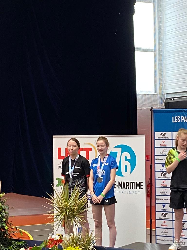 Après avoir frôlé la défaite lors du 1er tour (6/11 11/6 3/11 12/10 11/7), Alanis et Gaétane ont passé facilement les tours suivants pour défier, en vain, la paire tête de série N°1 en finale, mais les couleurs du TTSQ sont montées sur la podium avec le titre de Vice Champion de France 2021.