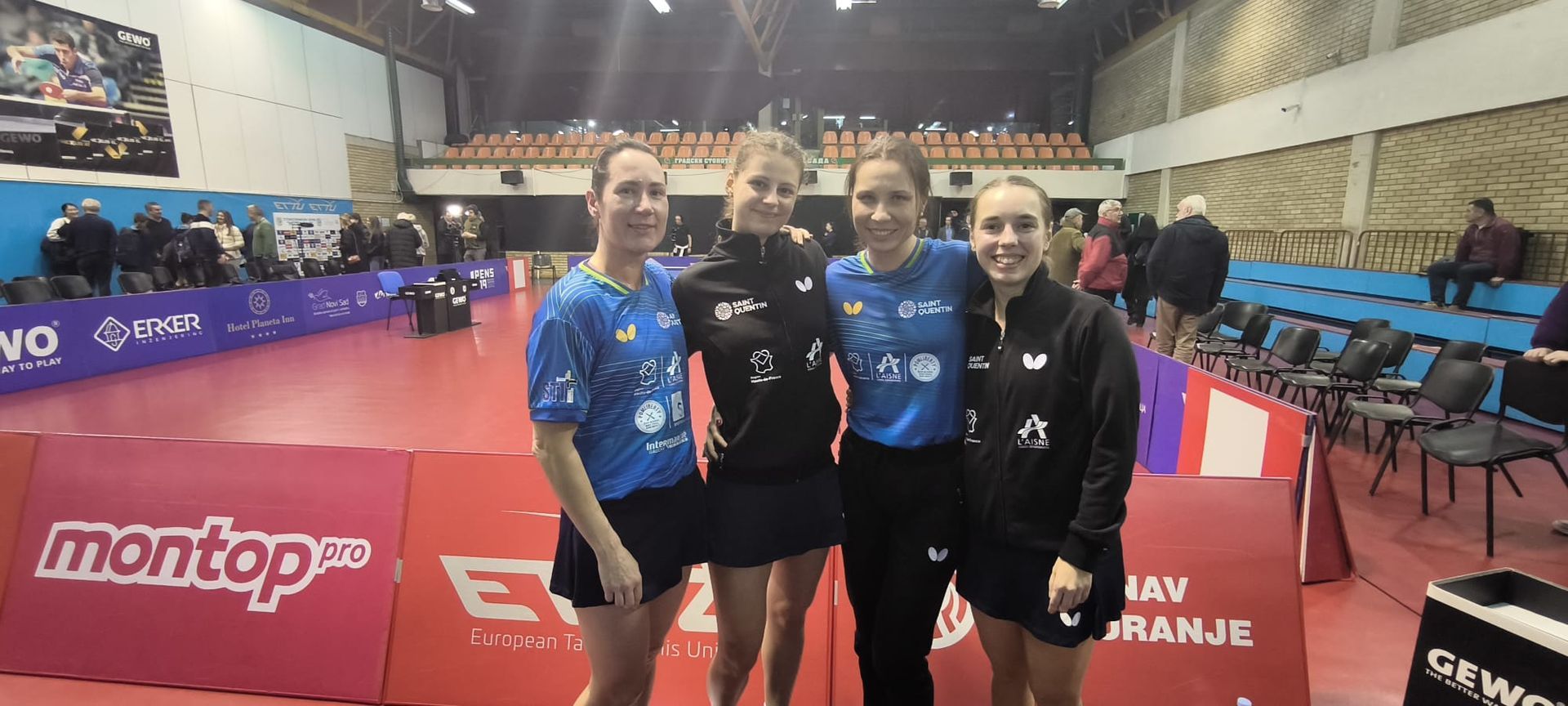 À l’occasion des Championnats de France Vétérans organisés à Caudry du 4 au 6 avril 2026, le Tennis de Table de Saint-Quentin avait 2 sélectionnées avec Agnès Le Lannic et Béatrice Fouquet dans la Catégorie des Plus de 50 ans et elles sont revenues avec 4 médailles : 2 d’or, 1 d’argent et 1 de bronze. - Béatrice décroche une belle médaille de bronze en Double Dames avec Sandrine Domps de Villers-lès-Nancy. En Simple, elle termine 1ère de sa poule en remportant ses 3 parties. Exempte en 1/16e de finale, elle gagne encore en 1/8e de finale. Arrivée en ¼ de finale, Béatrice Fouquet était opposée à la tête de série N°2, l’ex internationale et ex Championne d’Europe de la Police, Sylvie Plaisant, numérotée 129 FFTT de l’Entente Saint-Pierraise. Béatrice s’incline logiquement en 3 manches, mais termine dans les 8 meilleures Françaises V50 . Bravo ! En Double Mixte, associée à Stéphane Hanssens de Roost-Warendin, elle s’incline de nouveau contre Sylvie Plaisant, associée à Nicolae Cernea-Doru en 1/8e de finale. -Vice-Championne du Monde de Double Mixte, Agnès Le Lannic , associée à Grégory Goedaer N°714 de Valenciennes, a gagné difficilement à la belle en ¼ de finale, mais a obtenu le titre de Vice-Champion de France Double Mixte 2026 en s’inclinant 3 manches à 1 en finale contre la paire Plaisant-Cernea, bourreau de la Saint-Quentinoise Béatrice Fouquet. En revanche, avec Cynthia Catrouillet d’Angers St Léonard, Agnès est de nouveau Championne de France Double Dames 2026 en gagnant à la belle en finale contre le duo Sylvie Plaisant-Sophie Meslin de Coutances. La représentante du TTSQ avait frisé la correctionnelle dès le 1er tour en étant menée 2 manches à 0 et en arrachant la 3e manche aux avantages 13/11, avant de l’emporter nettement dans la manche décisive. En Simple V50, Agnès Le Lannic N°72 s’est promenée en poule (3 parties vite expédiées contre des non numérotées.) ainsi que pendant les tours à élimination directe. En finale, la sociétaire du TT Saint-Quentin retrouvait Sylvie Plaisant N°129 de l’Entente Saint-Pierraise. Agnès Le Lannic dominait la Championne de France Seniors 1993 & 1995 en 3 sets secs (13/11 114/ 11/5) et emportait son 3e titre de Championne de France V50 après 2024 et 2025. Bravo pour ses 4 médailles d’Agnès et de Béatrice sous les couleurs du TT Saint-Quentin.