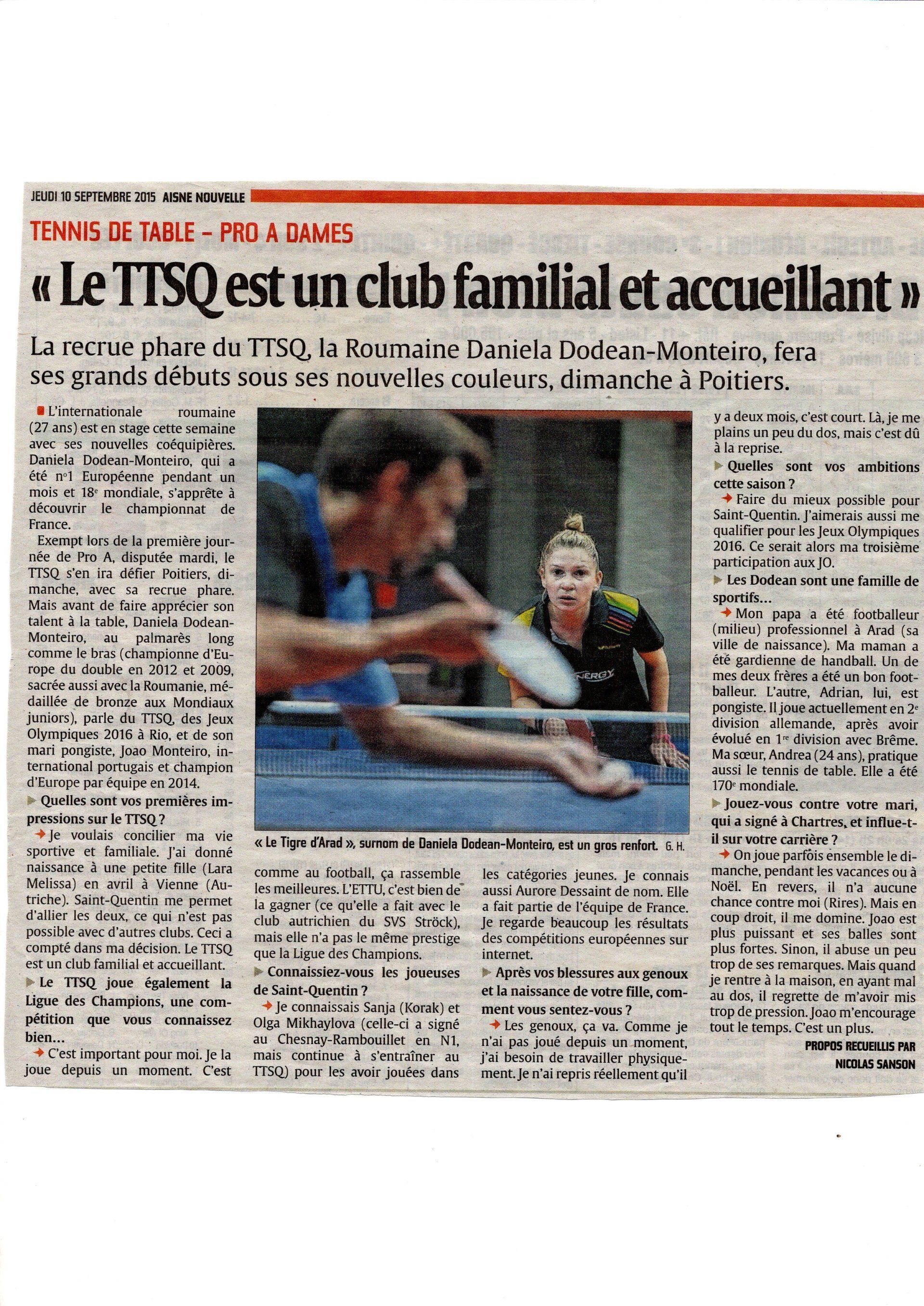 En 3 saisons, elle a obtenu 40 victoires sur 53 parties disputées en PRO (75,5% de victoires). Lors de sa 1ère saison au TTSQ, Daniela obtenait son meilleur pourcentage de victoires (76,5%) mais elle était malheureusement absente lors de 4 rencontres en seconde phase. En 2016-2017, elle terminait 2e meilleure joueuse derrière Fu Yu qu’elle avait battue lors de la première phase. Elle finissait très fort par 4 victoires sur 4 dont 2 lors de l’ultime match à Poitiers en battant entre autre la Championne de France Jia Nan Yuan. Sa performance permettait au TTSQ d’être Vice Champion de France 2017. Pour sa 3e et dernière saison à Saint-Quentin, elle se retrouvait hélas bien seule dans l’équipe au niveau résultat : 15 victoires pour elle contre 10 au total pour ses 5 coéquipières ! Ces 2 dernières années, elle a joué d’abord au Sporting Club du Portugal (avec un match européen contre le TTSQ) et est revenue en France, à Metz.