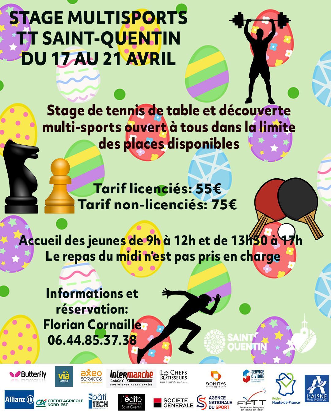 Le club organise un stage multisports pendant la première semaine des vacances de Pâques, du lundi 17 avril au vendredi 21 avril. Le stage est ouvert aux enfants de 7 à 16 ans, licenciés ou non au TTSQ.