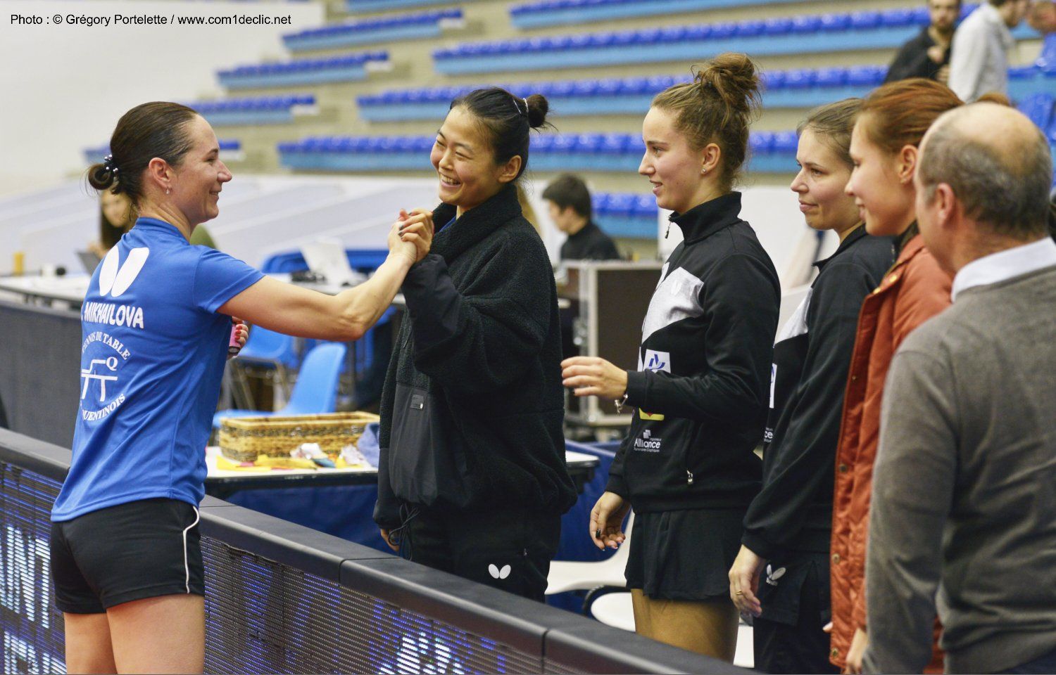 La 5e et dernière partie allait donc décider de la victoire finale. Polina Mikhailova affrontait Hana Matelova, invaincue cette saison, et la Tchèque l’avait battue au match retour de la saison dernière. Mais cette fois, il n’y eut pas de bataille tant la visiteuse a été submergée et dominée en 3 sets secs pour un total famélique de 13 points ! Dans la 1ère manche, Polina a mené 8/1. Dans la 2e, elle était à 7/2 et dans la 3e, elle a écrasé son adversaire par 10/1. Tout réussissait à la Saint-Quentinoise à la grande joie des spectateurs et du banc où se trouvait Aurore Le Mansec, toujours blessée. Quelle soirée pour les supporters du TTSQ qui est maintenant seul en tête de la poule A !