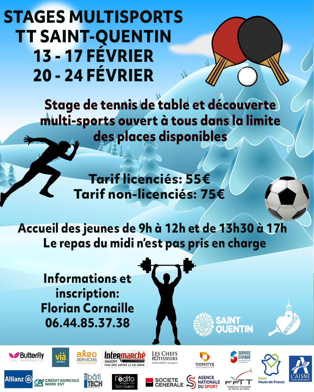 Le club organise deux stages multisports pendant les vacances d'hiver, le premier du lundi 13 au vendredi 17 février et le second du lundi 20 au vendredi 24 février. Le stage est ouvert aux enfants de 7 à 16 ans, licenciés ou non au TTSQ.