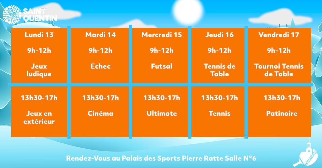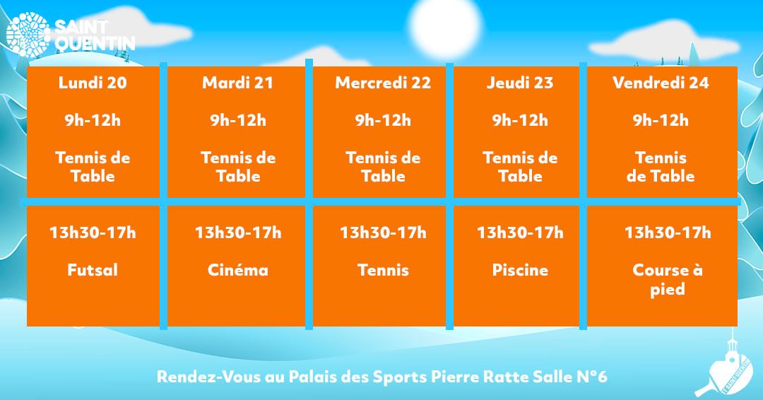 - Vendredi: Tournoi tennis de table le matin et patinoire l'après-midi